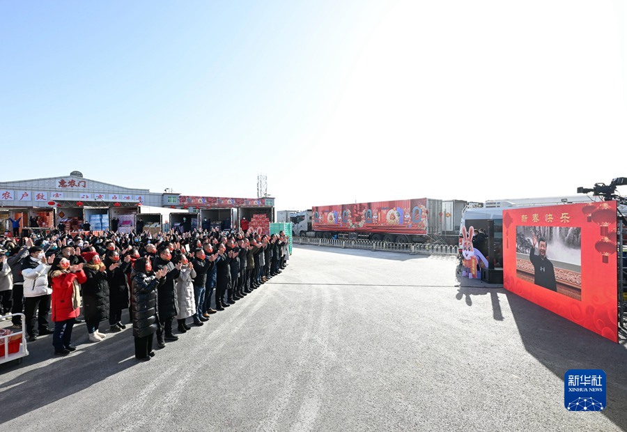 新發(fā)地農(nóng)產(chǎn)品批發(fā)市場是北京市重要的“菜籃子”、“果盤子”。習(xí)近平通過視頻親切看望慰問批發(fā)市場留守的商戶和采購年貨的群眾。在蔬菜一區(qū)露天交易區(qū),商戶和現(xiàn)場的群眾熱烈鼓掌,向總書記問好。聽完市場負(fù)責(zé)人介紹保供和物流情況后,習(xí)近平仔細(xì)詢問這幾天市場運(yùn)行情況怎么樣、今年商戶的買賣怎么樣、今年批發(fā)價格怎么樣。得知菜價保持平穩(wěn)、種類充足齊全,習(xí)近平十分欣慰。他指出,民以食為天?!安嘶@子”、“米袋子”、“果盤子”,事關(guān)千家萬戶,是最基本的民生。過年過節(jié),安全不能忘。批發(fā)市場既要在拓展貨源、豐富品種、保證質(zhì)量上下功夫,也要在加強(qiáng)食品檢測和市場管理上下功夫,讓首都市民吃得放心、吃得舒心。農(nóng)貿(mào)市場人流物流密集,是疫情防控的重點(diǎn)場所,要適度調(diào)控人流物流,加強(qiáng)疫情監(jiān)測檢測,搞好市場環(huán)境衛(wèi)生,盡最大努力降低疫情風(fēng)險。習(xí)近平強(qiáng)調(diào),各級黨委和政府要落實(shí)好“米袋子”省長負(fù)責(zé)制、“菜籃子”市長負(fù)責(zé)制,加強(qiáng)糧油肉蛋奶果蔬菌等重要民生商品的產(chǎn)銷保供,暢通物流配送,豐富節(jié)日市場供應(yīng),確保數(shù)量充足、品種豐富、質(zhì)量放心、價格穩(wěn)定,讓人民群眾開開心心、安安心心過大年。