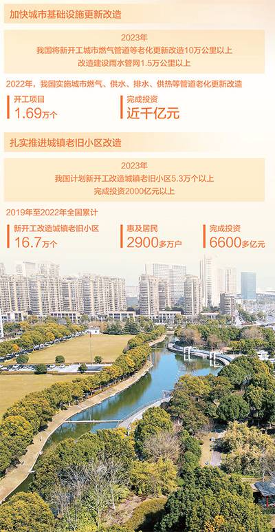 聚焦居民所思所想所盼所急,各地大力實(shí)施城市更新行動(dòng),讓人民群眾在城市生活得更方便、更舒心、更美好。2022年,我國(guó)實(shí)施城市燃?xì)?、供水、排水、供熱等管道老化更新改造,開(kāi)工項(xiàng)目1.69萬(wàn)個(gè)、完成投資近千億元。2019年至2022年,全國(guó)累計(jì)新開(kāi)工改造城鎮(zhèn)老舊小區(qū)16.7萬(wàn)個(gè),惠及居民2900多萬(wàn)戶(hù),完成投資6600多億元。