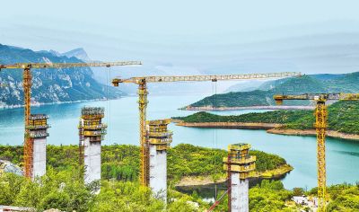4月17日,中鐵四局的建設(shè)者在濟(源)新(安)高速公路黃河北岸的濟源示范區(qū)桃花島大橋建設(shè)工地施工。該高速公路是河南省高速公路“13445工程”重點建設(shè)項目之一,全長47.961公里,起于濟源示范區(qū)邵原鎮(zhèn),向南跨越黃河,止于洛陽市新安縣鐵門鎮(zhèn)。苗秋鬧 攝