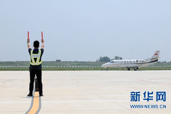 新華網(wǎng)鄭州5月17日電 5月17日上午,一架從中國民用航空飛行校驗中心起飛的校驗飛機(jī)“獎狀C560”平穩(wěn)降落在安陽紅旗渠機(jī)場,這也標(biāo)志著為期6天的安陽紅旗渠機(jī)場校驗飛行工作正式啟動。