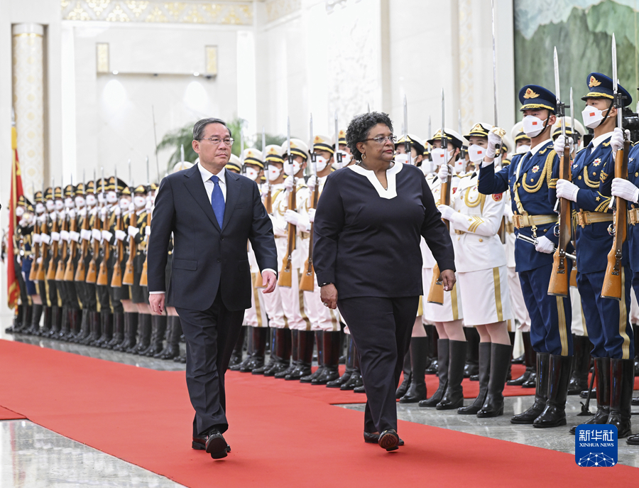 6月25日下午,國(guó)務(wù)院總理李強(qiáng)在北京人民大會(huì)堂同來(lái)華進(jìn)行正式訪問(wèn)的巴巴多斯總理莫特利會(huì)談。這是會(huì)談前,李強(qiáng)在人民大會(huì)堂北大廳為莫特利舉行歡迎儀式。新華社記者 張領(lǐng) 攝