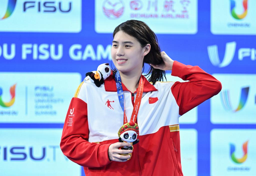 8月2日,張雨霏在女子50米蝶泳頒獎儀式上。新華社記者陳澤國攝