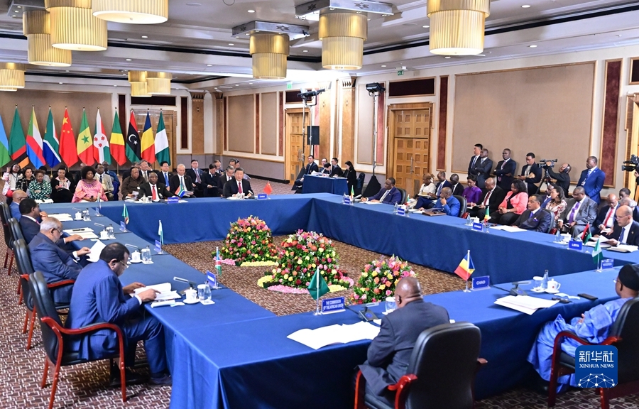 非盟輪值主席、科摩羅總統(tǒng)阿扎利,中非合作論壇非方共同主席國、塞內(nèi)加爾總統(tǒng)薩勒,非洲次區(qū)域組織代表贊比亞總統(tǒng)希奇萊馬、布隆迪總統(tǒng)恩達(dá)伊施米耶、吉布提總統(tǒng)蓋萊、剛果(布)總統(tǒng)薩蘇、納米比亞總統(tǒng)根哥布、乍得總理凱布扎博、利比亞總統(tǒng)委員會副主席庫尼、尼日利亞副總統(tǒng)謝蒂馬,以及非盟委員會代表穆昌加等出席。