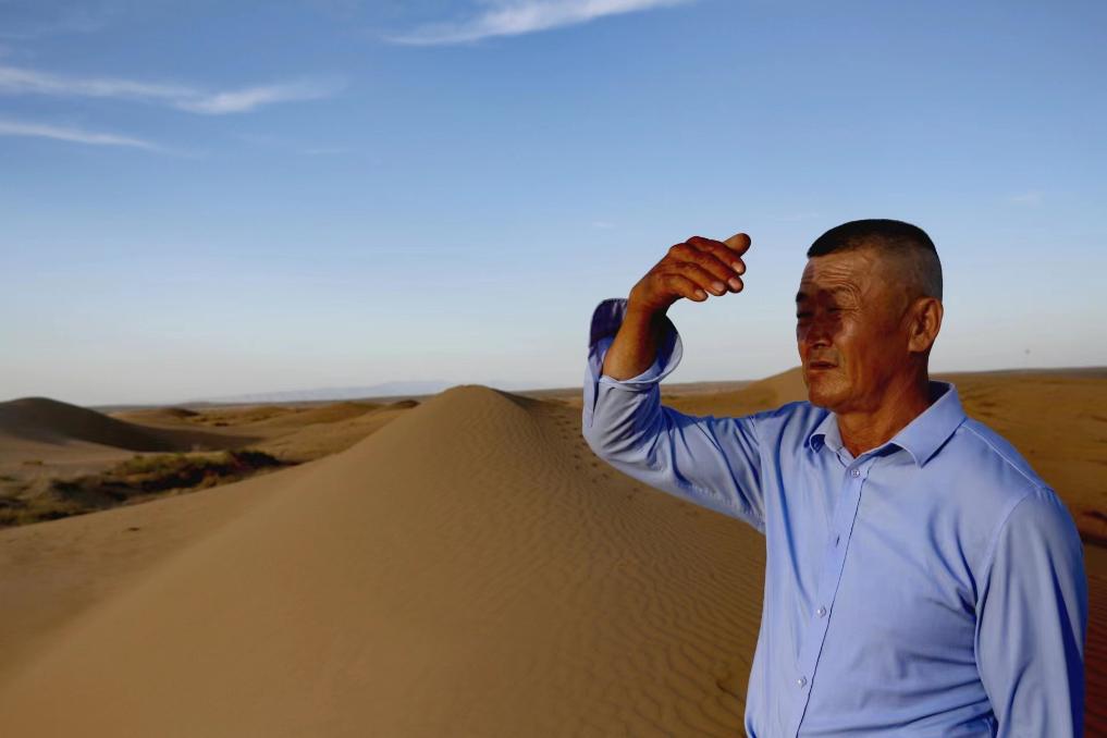 烏日根達(dá)來還是個(gè)精壯小伙時(shí),在妻子支持下,賣掉家里的山羊換回2萬元,正式開始植樹治沙。