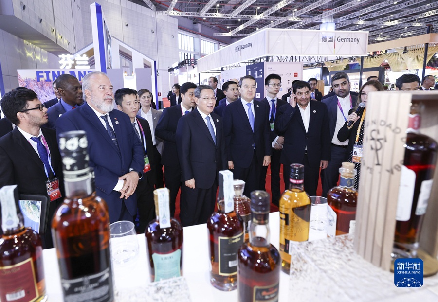 開幕式前,李強(qiáng)參觀了企業(yè)展。開幕式后,李強(qiáng)同與會(huì)外國(guó)領(lǐng)導(dǎo)人共同巡館。