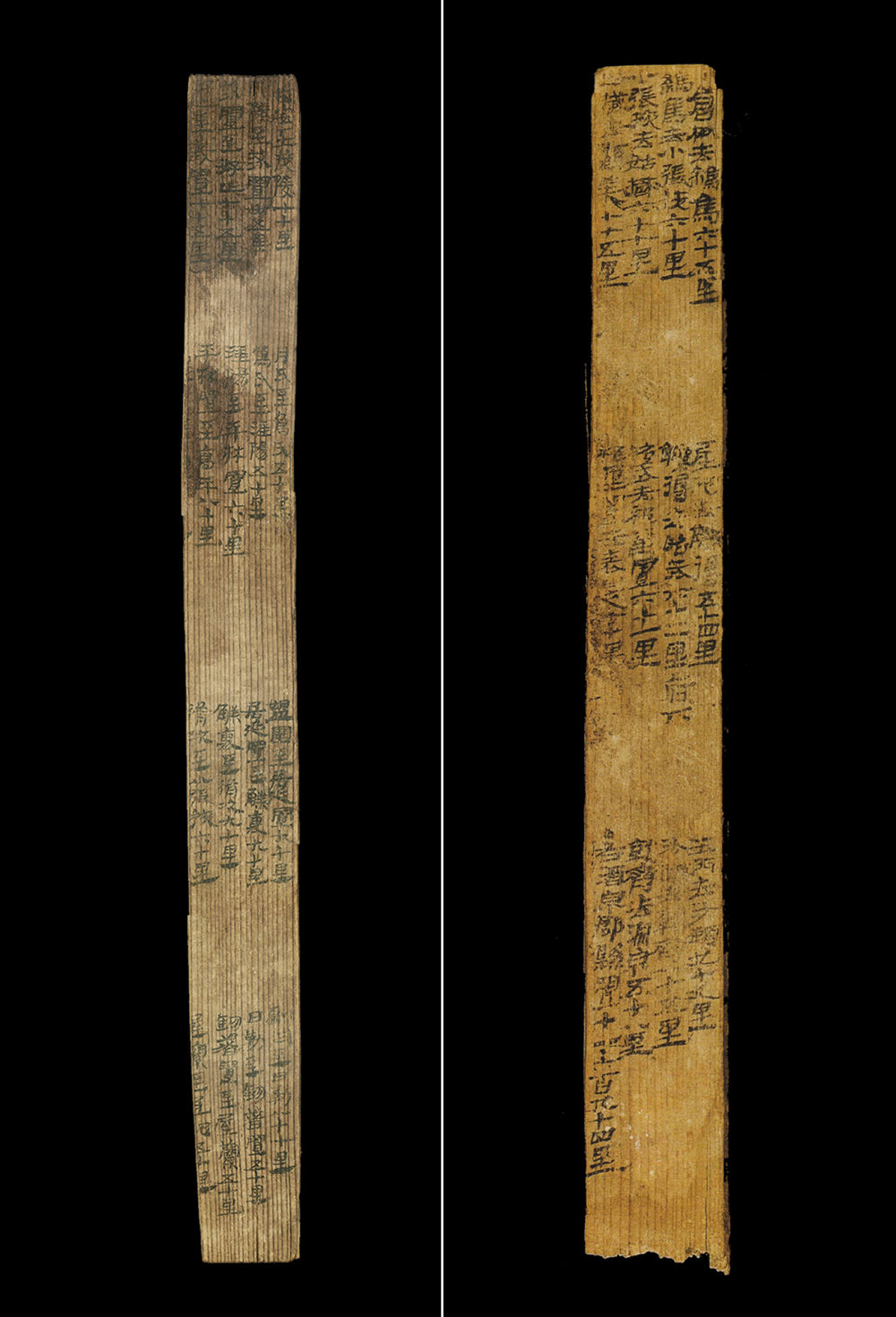 拼版照片:漢簡(jiǎn)《居延里程簡(jiǎn)》(左圖)和《懸泉里程簡(jiǎn)》。1974年出土于今內(nèi)蒙古自治區(qū)額濟(jì)納旗破城子遺址的“居延里程簡(jiǎn)”,詳細(xì)記載了從漢代長安出發(fā)至張掖郡20個(gè)驛置名稱及間隔里程。1990年出土于敦煌懸泉置遺址的“懸泉里程簡(jiǎn)”,記載了河西走廊地區(qū)武威郡到敦煌郡12個(gè)驛置的詳細(xì)信息。新華社發(fā)(甘肅簡(jiǎn)牘博物館供圖)