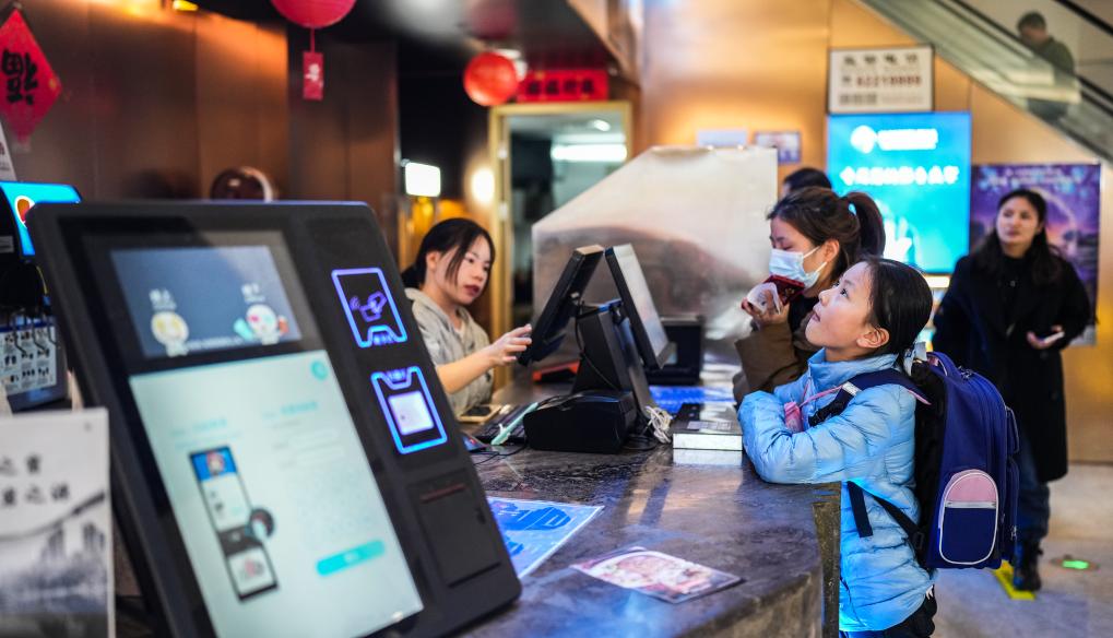 ??2月18日,小朋友在貴陽(yáng)市云巖區(qū)益田國(guó)際影城選購(gòu)電影票。新華社記者 陶亮 攝