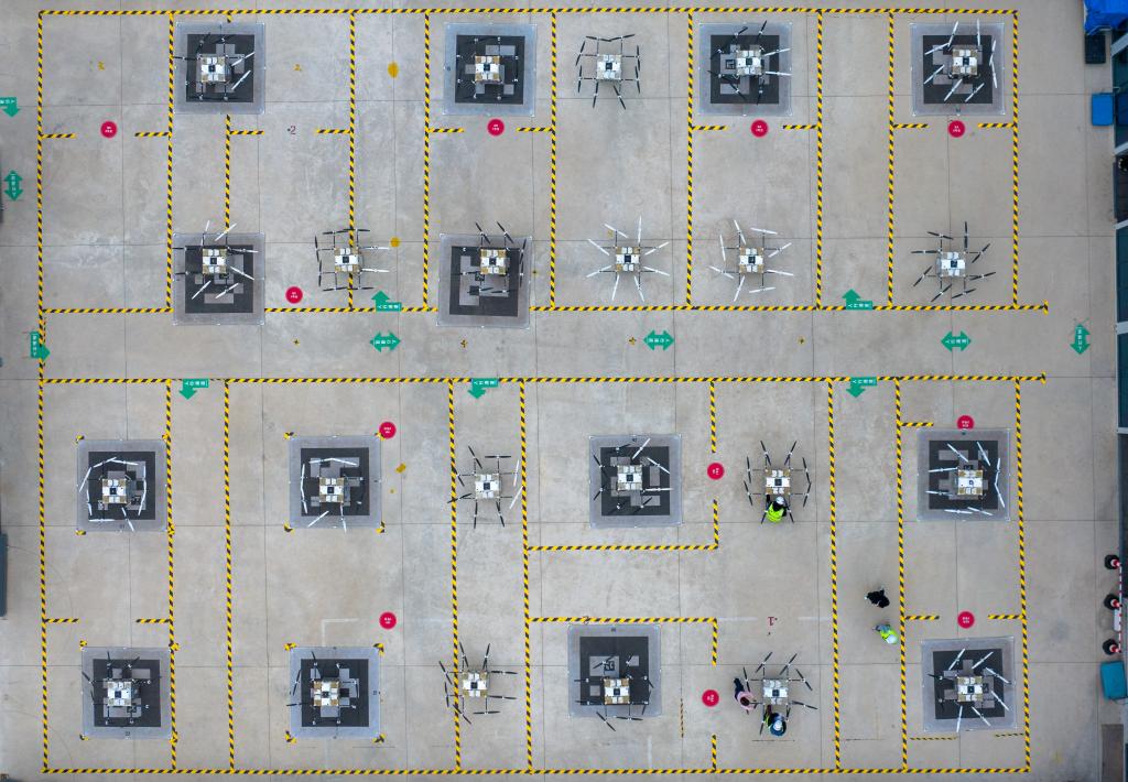 ??在豐翼無人機(jī)運(yùn)營中心,地勤人員對(duì)無人機(jī)進(jìn)行起飛前的檢查(無人機(jī)照片)。