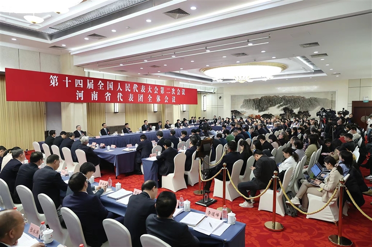 ?3月7日下午,十四屆全國人大二次會議河南代表團舉行全體會議,并向境內(nèi)外媒體開放。本報記者 董亮 杜小偉 攝