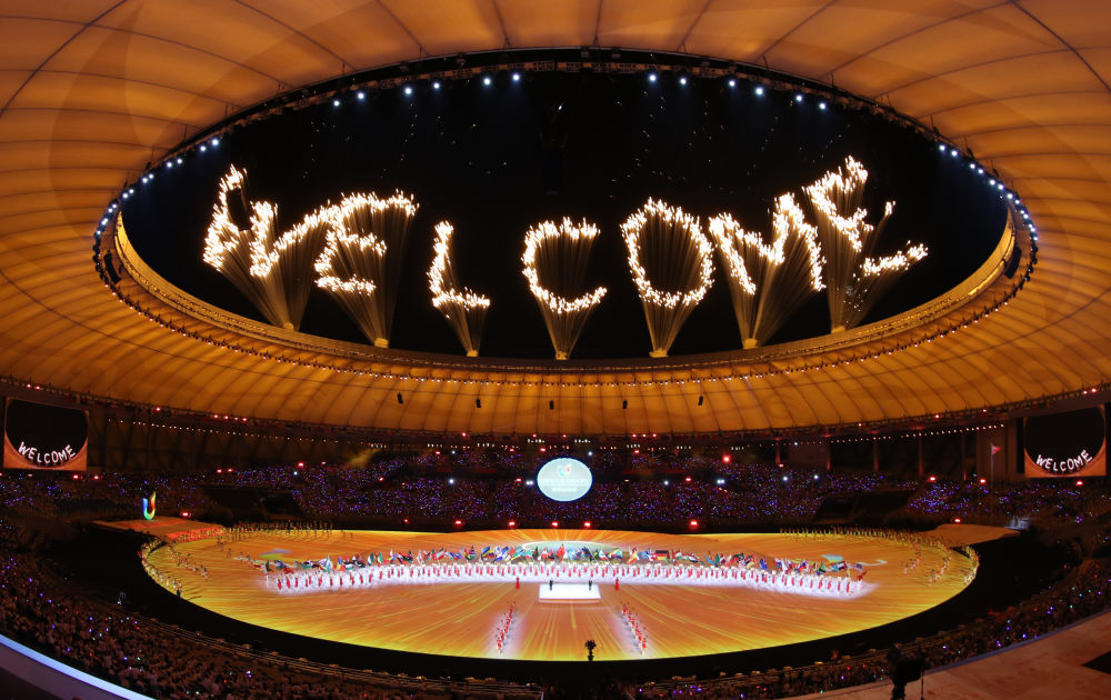 ??這是2023年7月28日拍攝的第31屆世界大學(xué)生夏季運(yùn)動(dòng)會(huì)開(kāi)幕式焰火。新華社記者 江宏景 攝