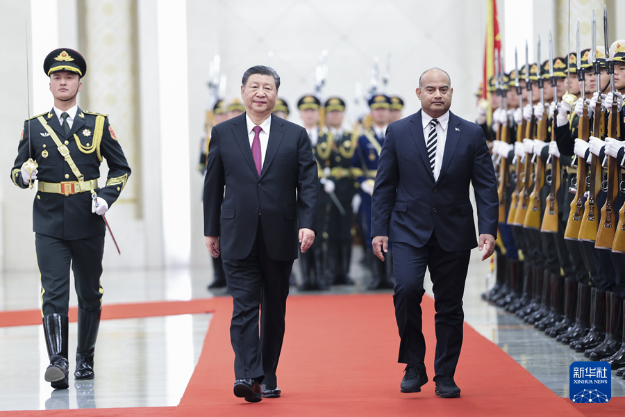 ??3月25日下午,國家主席習(xí)近平在北京人民大會堂同來華進行國事訪問的瑙魯總統(tǒng)阿迪昂舉行會談。這是會談前,習(xí)近平在人民大會堂北大廳為阿迪昂舉行歡迎儀式。新華社記者 翟健嵐 攝