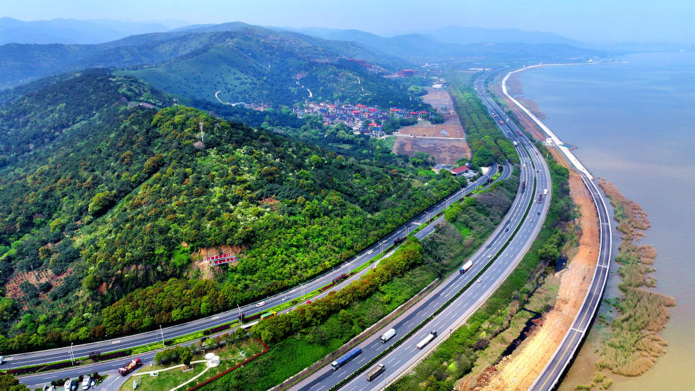 ??俯瞰104國道浙江湖州長興段(2024年4月10日攝,無人機照片)。