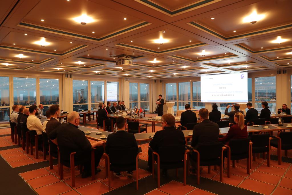 ??1月22日,中國江蘇省太倉市在德國北威州貝庫姆市為落戶的第500家德企伯曼集團舉行授牌儀式。新華社記者 杜哲宇 攝