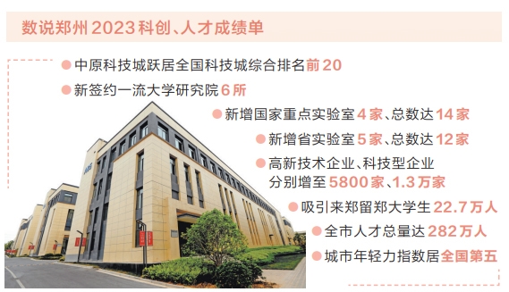 搭建平臺(tái),用好政策,優(yōu)化服務(wù),留住人才,“年輕鄭、文化鄭、國(guó)際鄭、科技鄭”成為鄭州的城市新標(biāo)簽。2023年,中原科技城躍居全國(guó)科技城綜合排名前20;新簽約一流大學(xué)研究院6所,新增國(guó)家重點(diǎn)實(shí)驗(yàn)室4家、總數(shù)達(dá)14家,新增省實(shí)驗(yàn)室5家、總數(shù)達(dá)12家;高新技術(shù)企業(yè)、科技型企業(yè)分別增至5800家、1.3萬(wàn)家;吸引來(lái)鄭留鄭大學(xué)生22.7萬(wàn)人,全市人才總量達(dá)282萬(wàn)人;全市常住人口平均年齡不超過(guò)35歲、城市年輕力指數(shù)居全國(guó)第五。