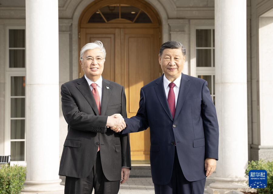 ??當?shù)貢r間7月2日晚,國家主席習近平應邀同哈薩克斯坦總統(tǒng)托卡耶夫共進晚餐,在愉快溫馨的環(huán)境中就中哈關系和共同關心的問題進行了親切友好的交流。這是習近平同托卡耶夫握手。新華社記者 謝環(huán)馳 攝