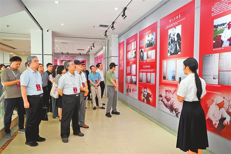 7月30日,全國多地的經(jīng)濟媒體負(fù)責(zé)人來到河南開封科技傳媒學(xué)院,參觀“勿忘人民——學(xué)習(xí)穆青、增強‘四力’”主題展。 河南日報社全媒體記者 朱哲 攝