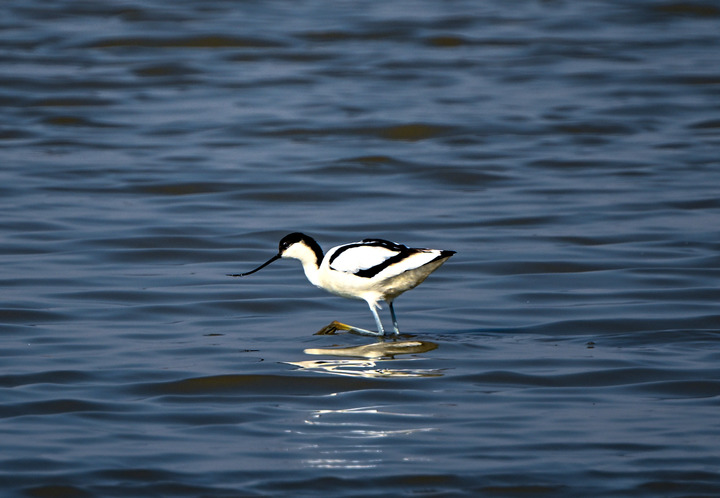 一只反嘴鷸在天津七里海濕地自然保護區(qū)內(nèi)休憩覓食。新華社記者 孫凡越 攝