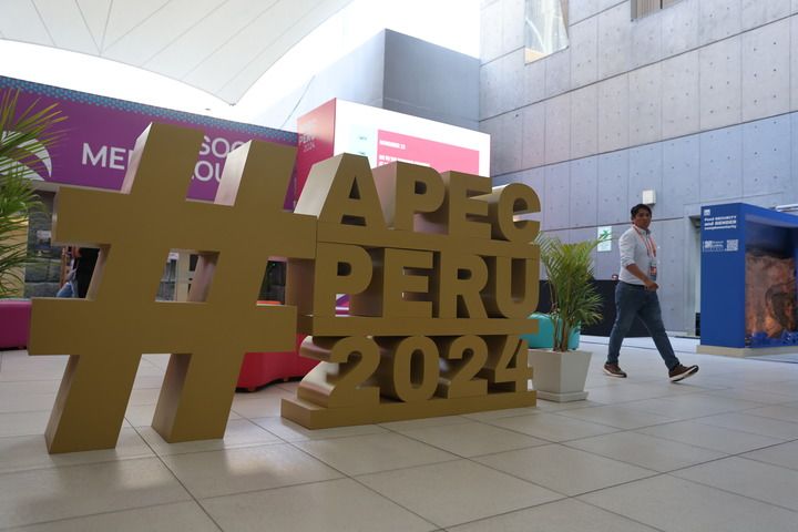 ??這是11月8日在秘魯利馬拍攝的2024年亞太經(jīng)濟(jì)合作組織(APEC)會議標(biāo)識。新華社記者 許睿 攝