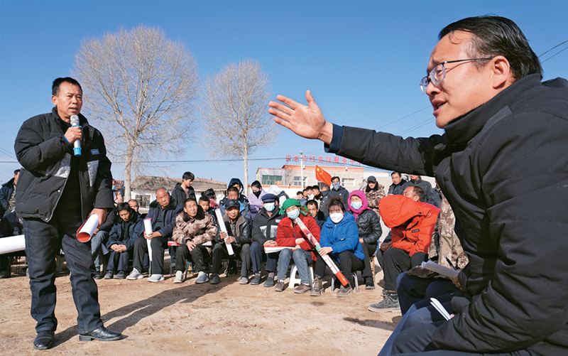 基層民主是全過程人民民主的重要體現(xiàn)。圖為2024年1月17日,在甘肅省臨夏州積石山縣石塬鎮(zhèn)宋家溝村災(zāi)后重建協(xié)商會(huì)上,鄉(xiāng)鎮(zhèn)干部、村干部與村民共同商議災(zāi)后重建相關(guān)事宜。